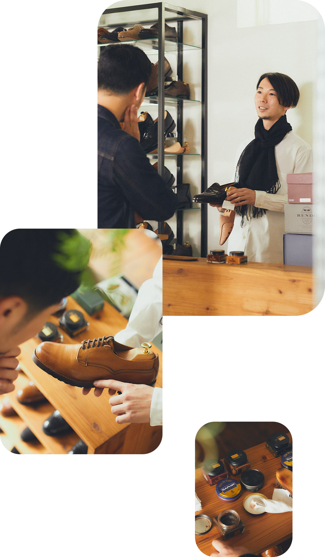 代官山のお店では、日々スタッフとお客さんで革靴談議に花を咲かせています。高級革靴を買うのが初めてという方から玄人の方まで、気負わずゆるく楽しんでいただけるようなお店になったと思いますので、是非気軽にお越しください。